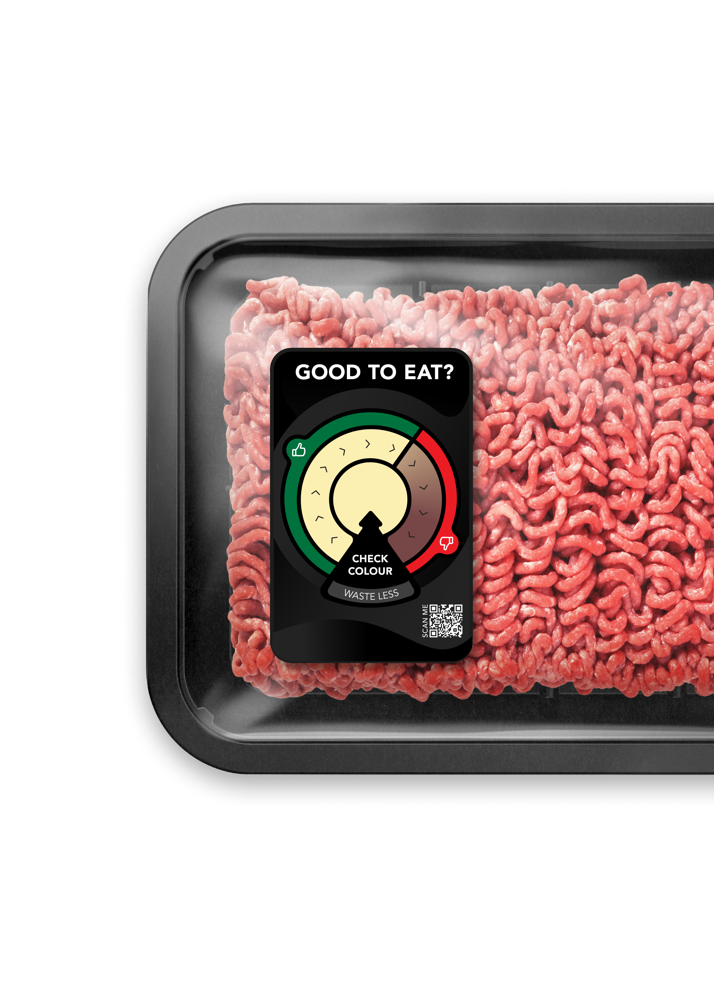 This patentable technology is what allows us to create a sensor that, in real time, tells us the freshness of the product. The Bio-Sensor changes color based on the gas levels, indicating whether the product is safe to eat or not.